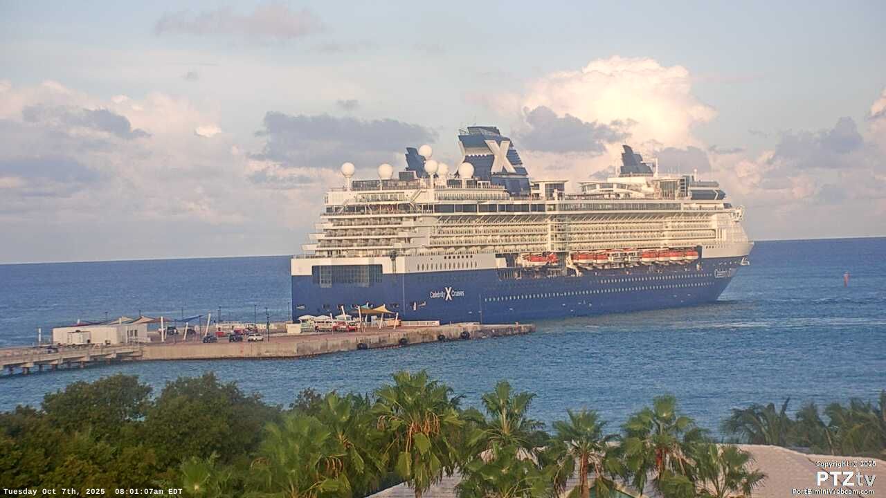 Usually you will see a cruise ship at dock but not always. Ships from Carnival, Virgin, Celebrity and others.
